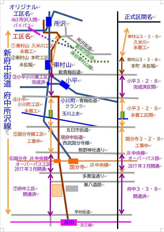 @東村山 久米川工区 A東村山 本町工区 @正式名 府中所沢線 東村山3・3・8久米川 未着工 A正式名 府中所沢線 東村山3・3・8本町 未拡幅 |