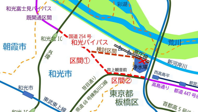 位置付けられている和光富士見バイパス、