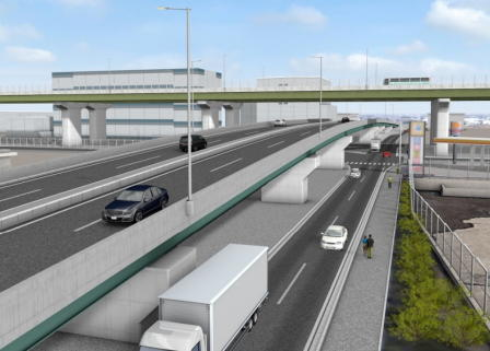 外環の高架の下に側道をオーバーパスする