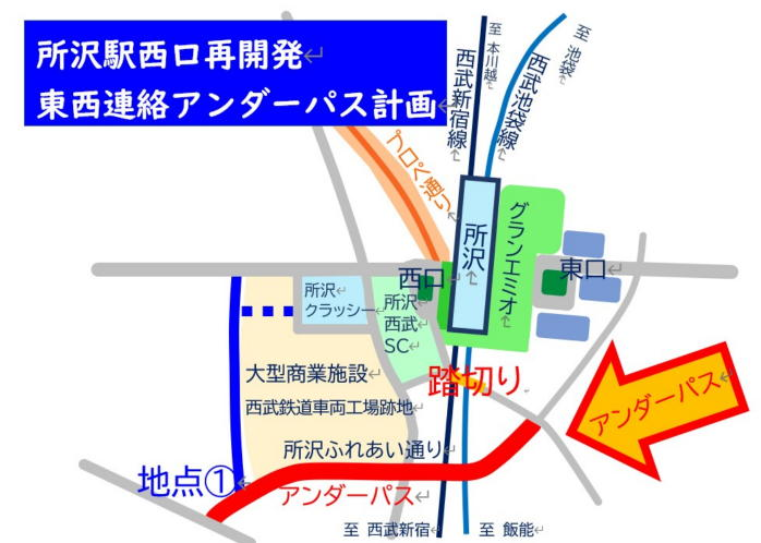 所沢駅所沢ふれあい通り 東西連絡アンダーパス化計画