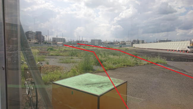 赤線で描いたような場所に道路が通る予定です