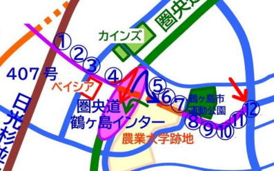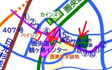 ここから鶴ヶ島市運動公園までは