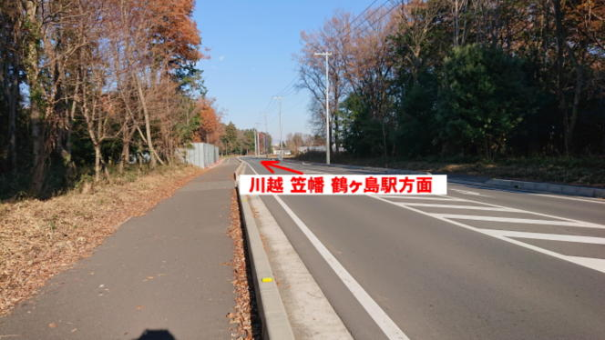 この先この道路が鶴ヶ島市と川越市の