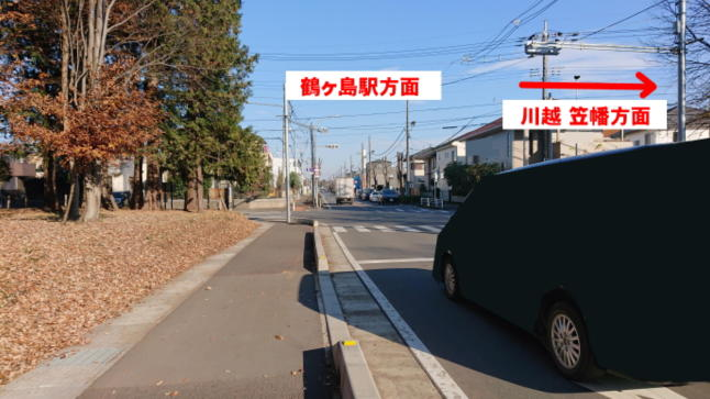 真直ぐ行くと鶴ヶ島駅方面